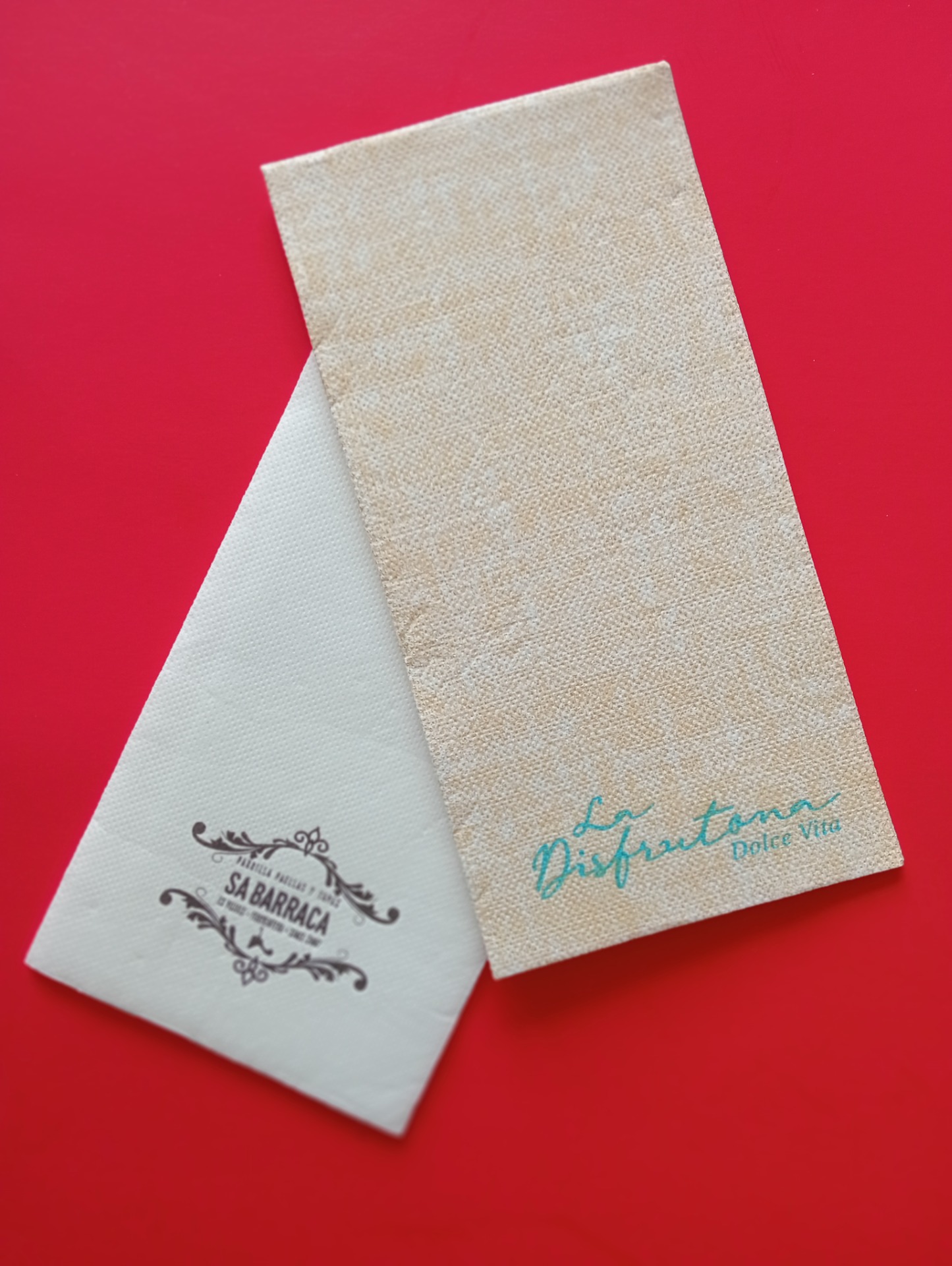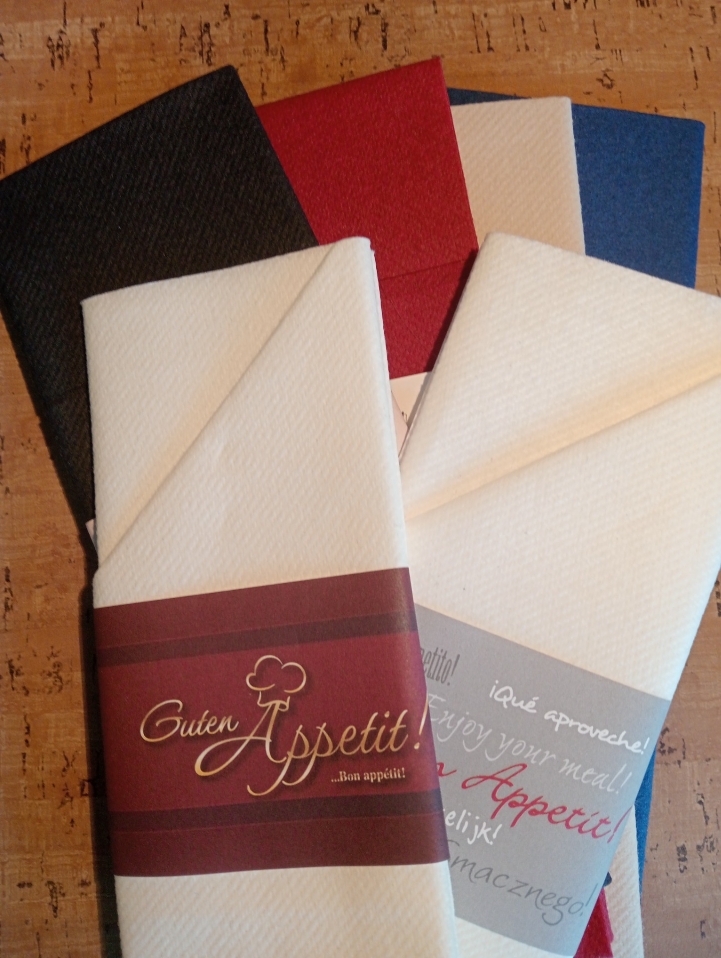 Servetten in vele kleuren en uitvoeringen tot en met het voorzien van sleeves. De keus is aan u.