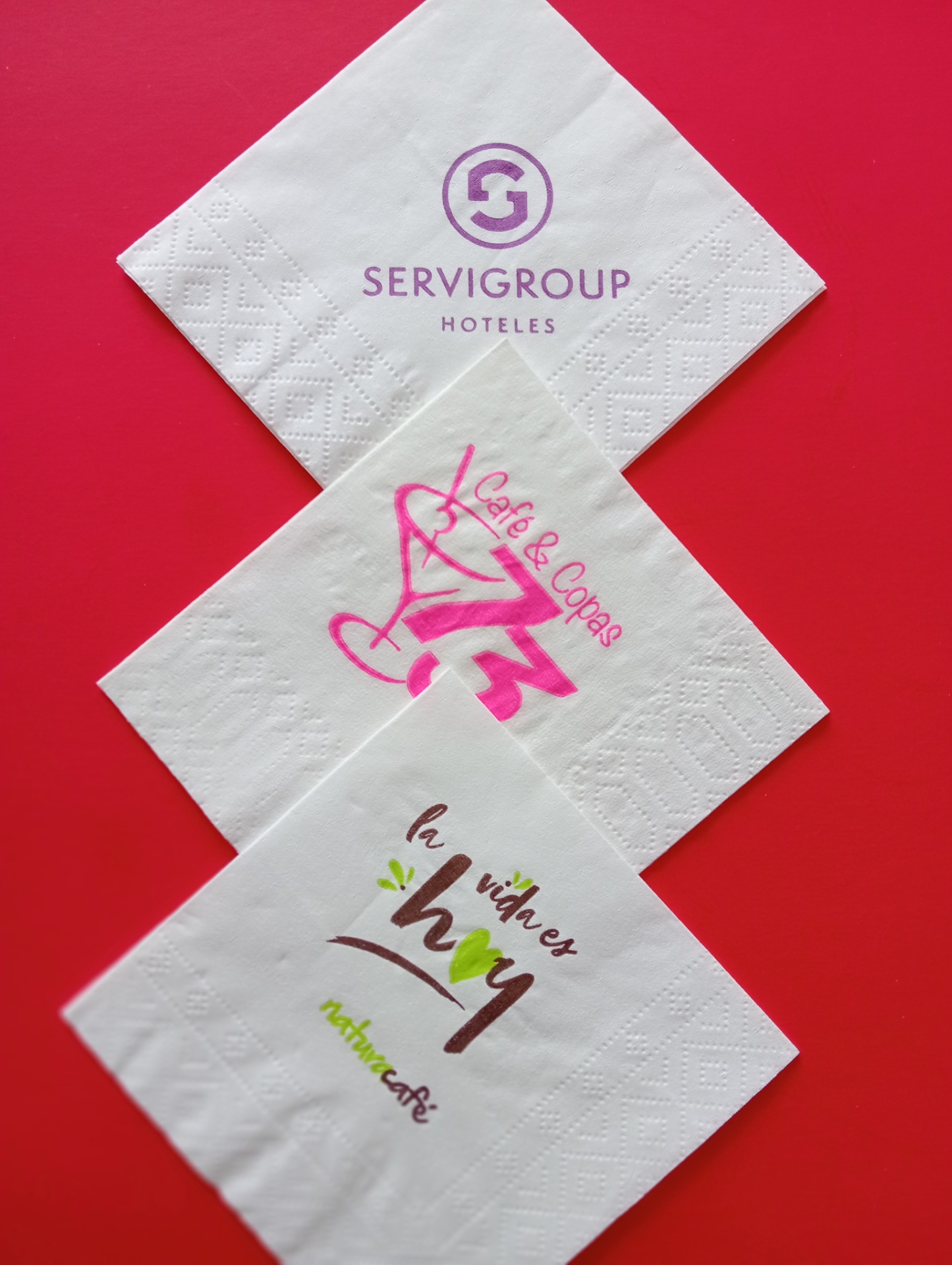 Papieren servetten in vele kleuren formaten en uitvoeringen.